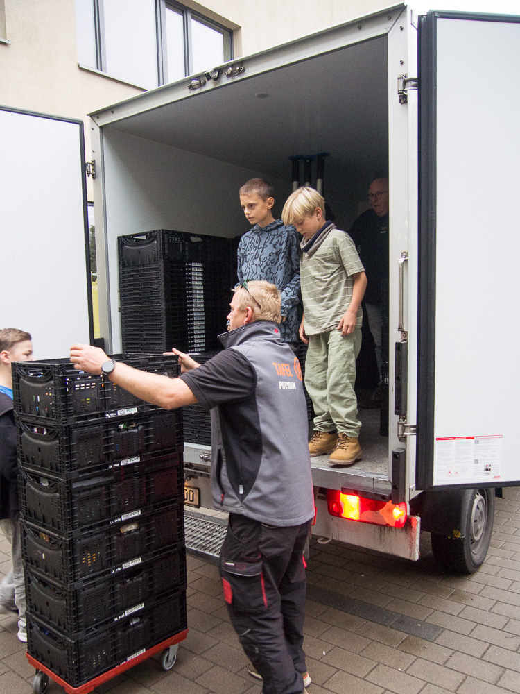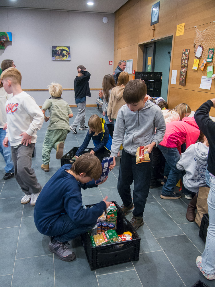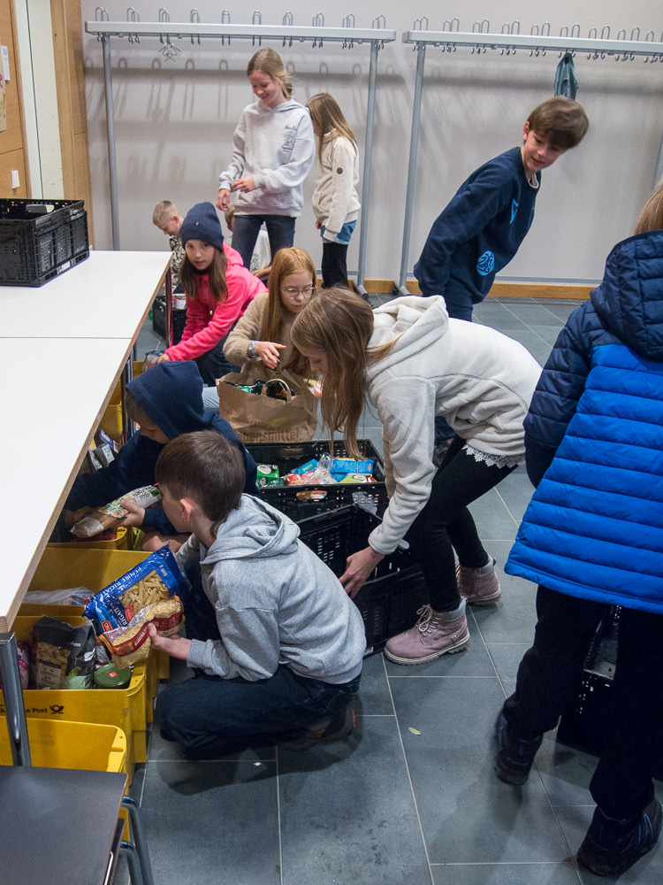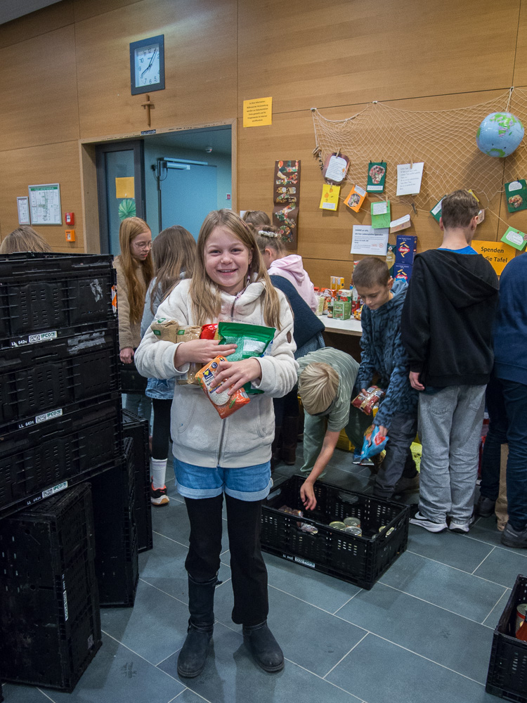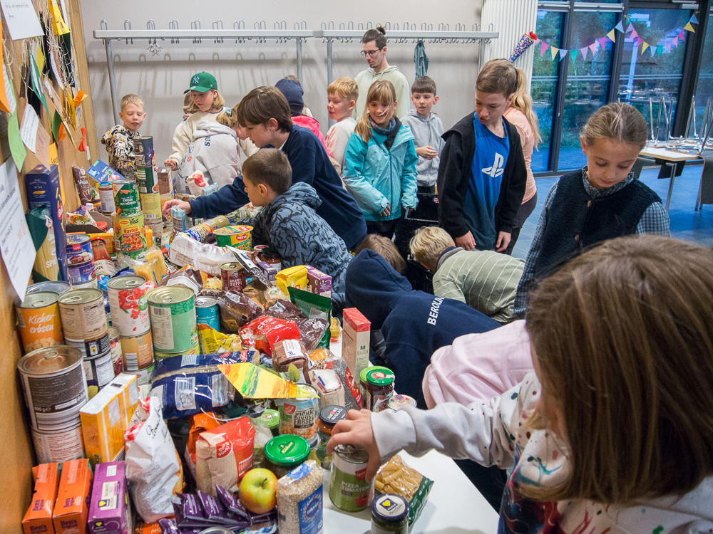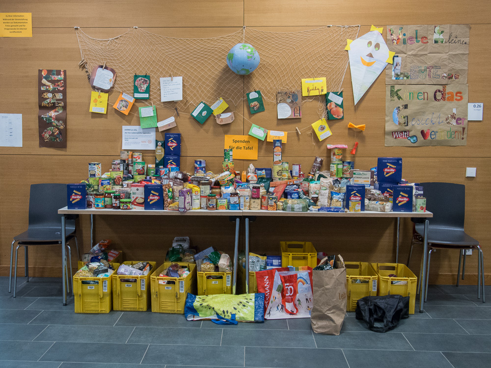 Einige Tische an der Seite der Mensa füllen sich mit vielen haltbaren Lebensmittel. So ist es schon Tradition an der Marienschule. Kinder aus der Grundschule und Jugendliche aus dem Gymnasium bringen ihre Gaben, die dann an DIE TAFEL in Potsdam gehen. Nicht wenige staunen über die Menge, die sich da auftürmt. Wir als Team finden es wichtig, dass Kinder so auch erfahren, dass es in unmittelbarer Nähe Menschen gibt, die sich nur mit Mühe leisten können, sich zu versorgen.