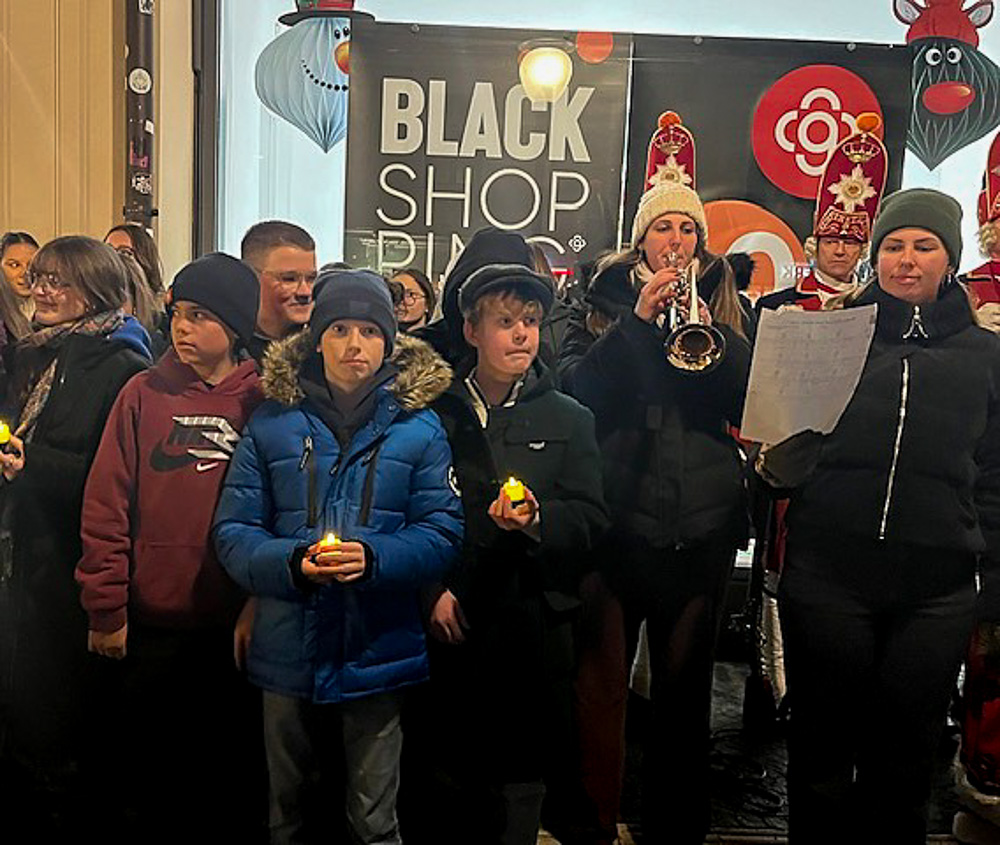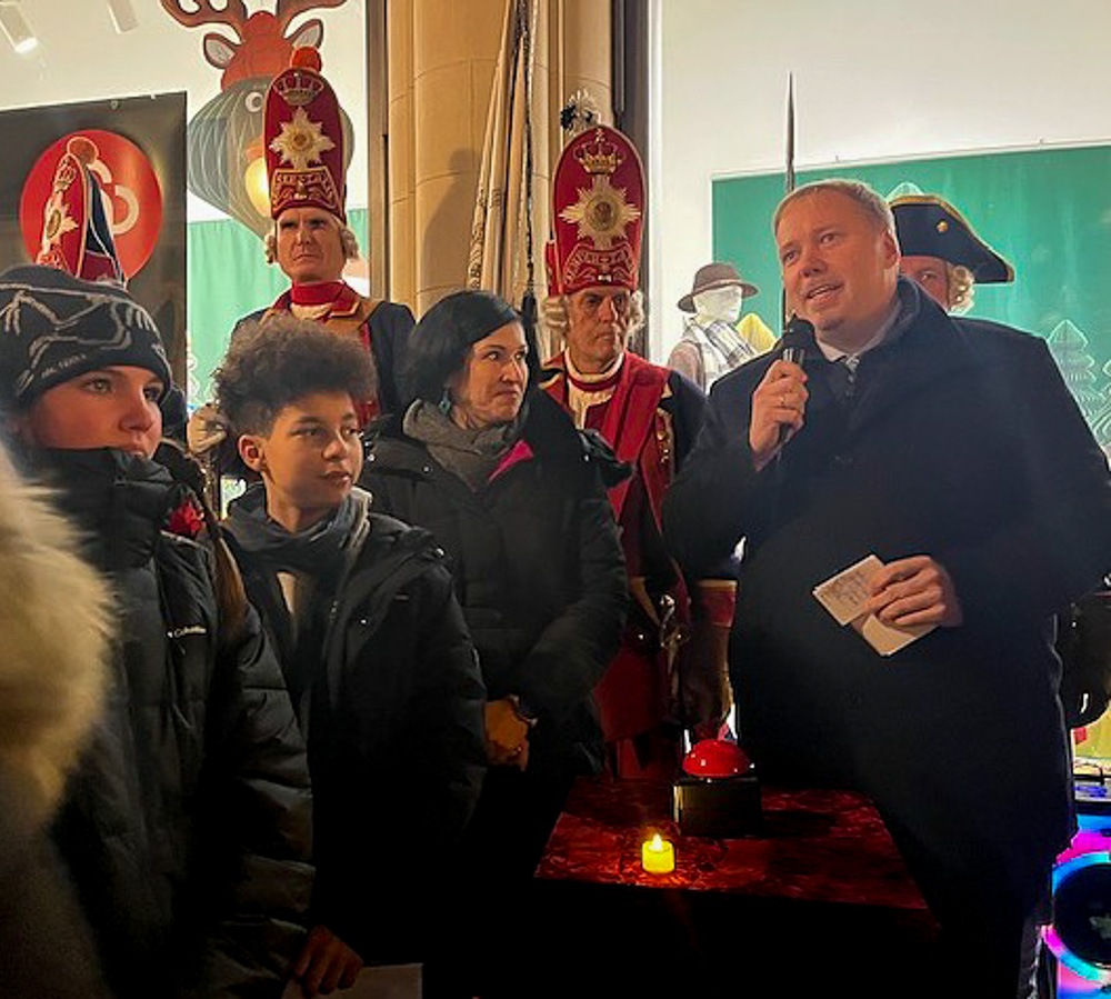 Im Anschluss zog eine bunte Delegation aus Einzelhandel, Lehrkräften und einem erfreulich gut gelaunten Chor durch die Innenstadt Richtung Karstadt. Dort erwartete uns die feierliche Illumination des Weihnachtsmarkts. Unsere Schülerinnen und Schüler stimmten „Mache dich auf und werde Licht“ an – und als die Oberbürgermeisterin symbolisch die Lichter an einem Weihnachtsbaum entzündete, war klar: Das Licht der Adventszeit ist nicht nur auf dem Weihnachtsmarkt angekommen, sondern ganz sicher auch in unserer Marienschule.