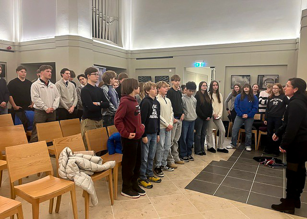 Rund 50 unserer Schülerinnen und Schüler hatten sich zu einem Projektchor zusammengefunden. Dass sich darunter so viele Gesangstalente verbergen, hätten wir nicht gedacht. Wir standen da, lauschten – und fragten uns heimlich, ob wir nicht doch einen dauerhaften Marienschulchor etablieren sollten. Begleitet wurden die jungen Sängerinnen und Sänger von Jonathan Kreutzmann, dessen Klarinettenspiel warm durch die Kapelle schwebte.