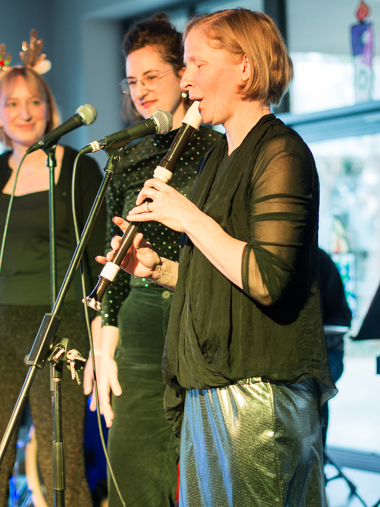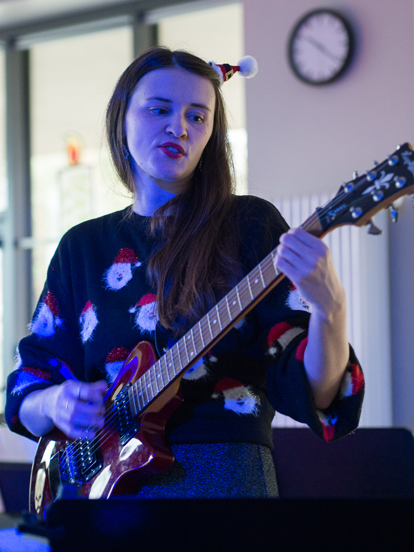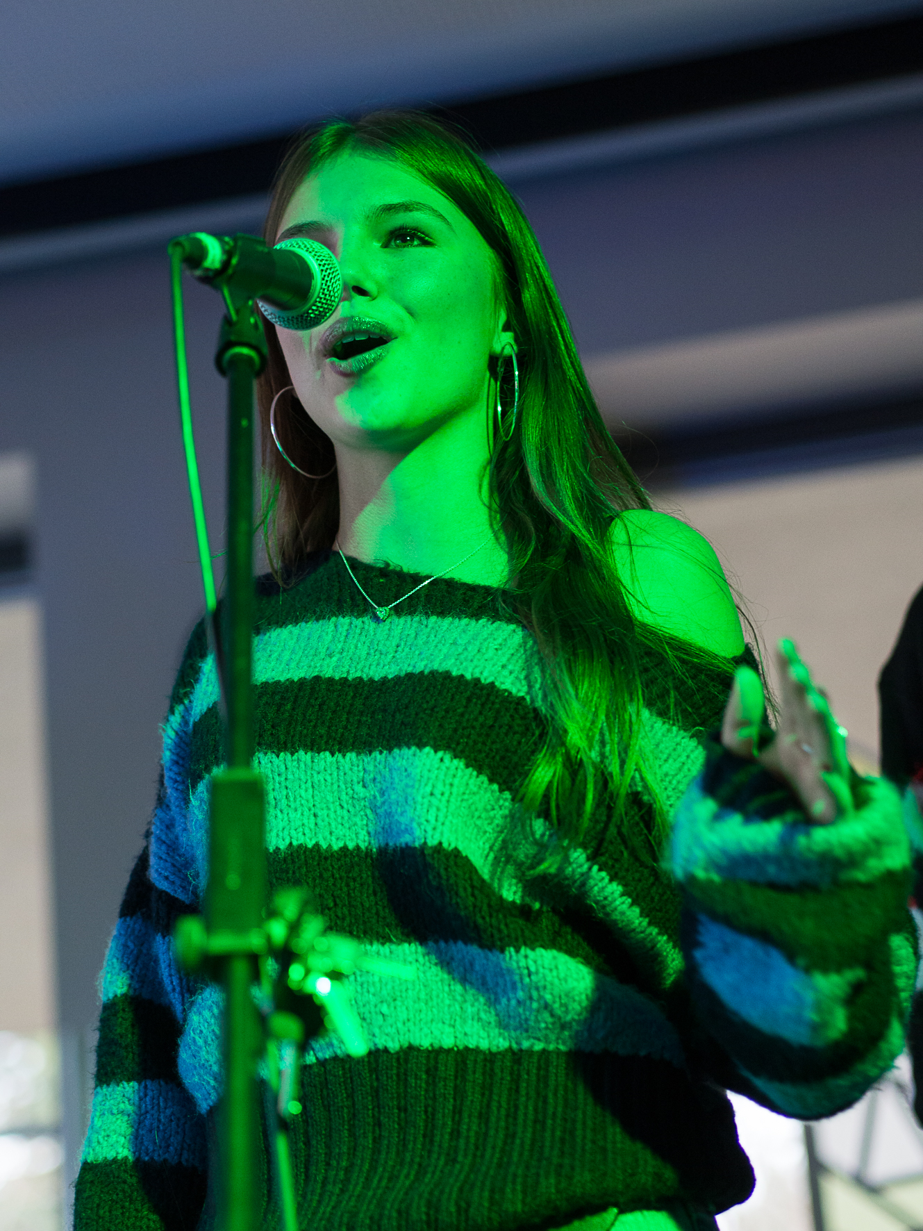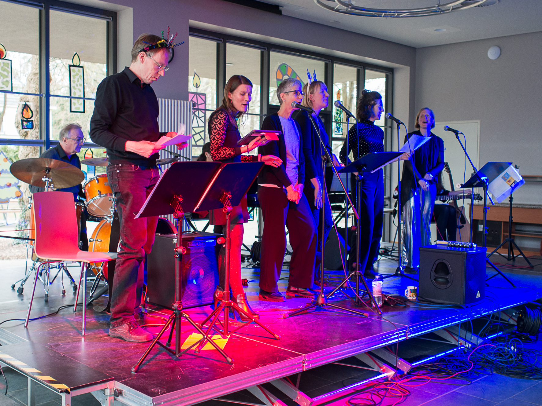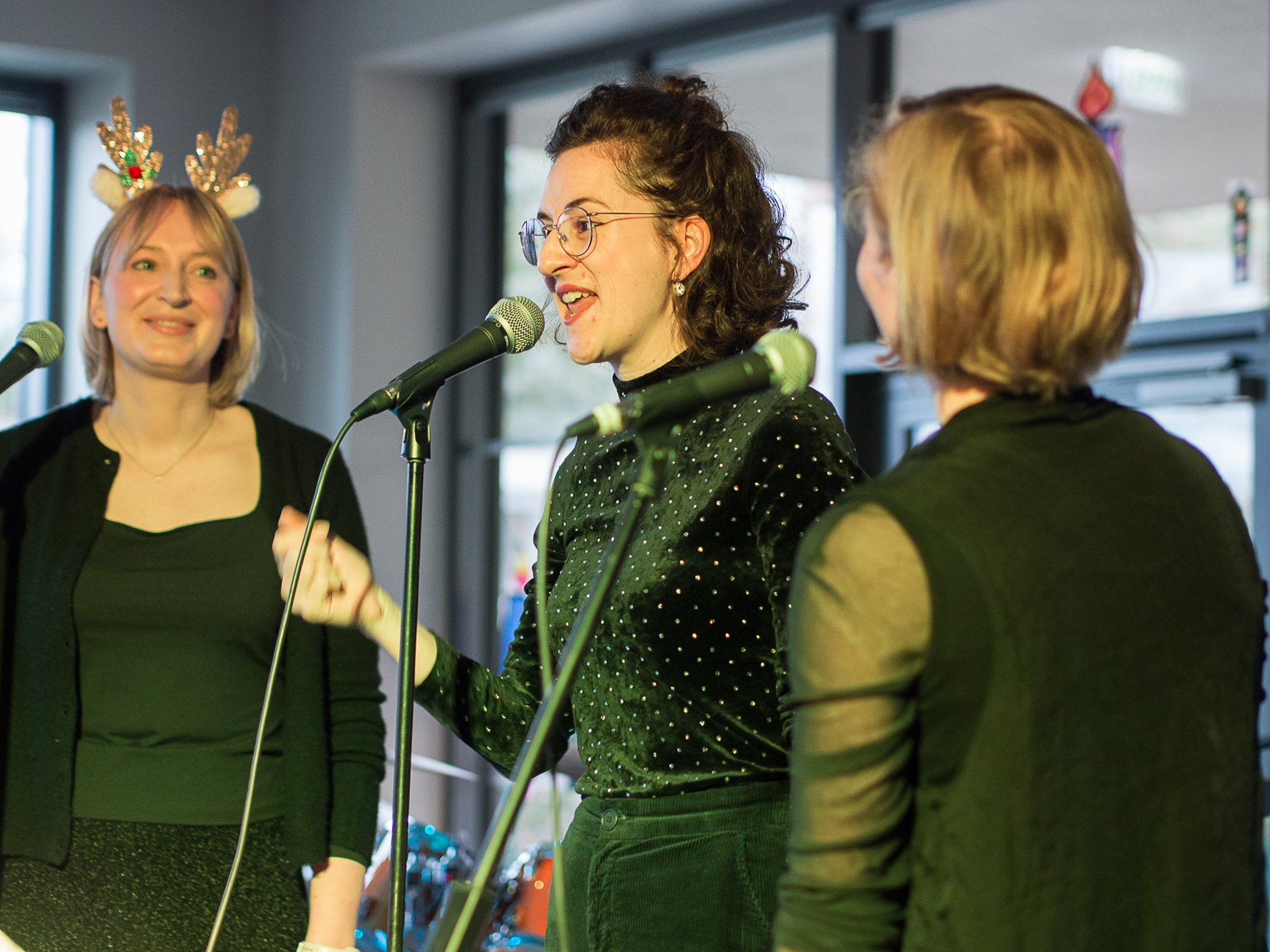 DIE BAND spielte erst für die Schülerinnen und Schüler des Gymnasiums einige Weihnachtshits und begleiteten bekannte Weihnachtslieder zum Mitsingen. Für die Kinder der Grundschule fiel die Auswahl der Lieder altersentsprechend etwas anders aus. Unsere Bandmitglieder des Kollegiums rockten alle Kinder von den Stühlen. Es war wirklich toll anzuschauen, wie die Kinder anfingen zu tanzen. So konnten alle fröhlich und beschwingt in die Weihnachtsferien gehen.