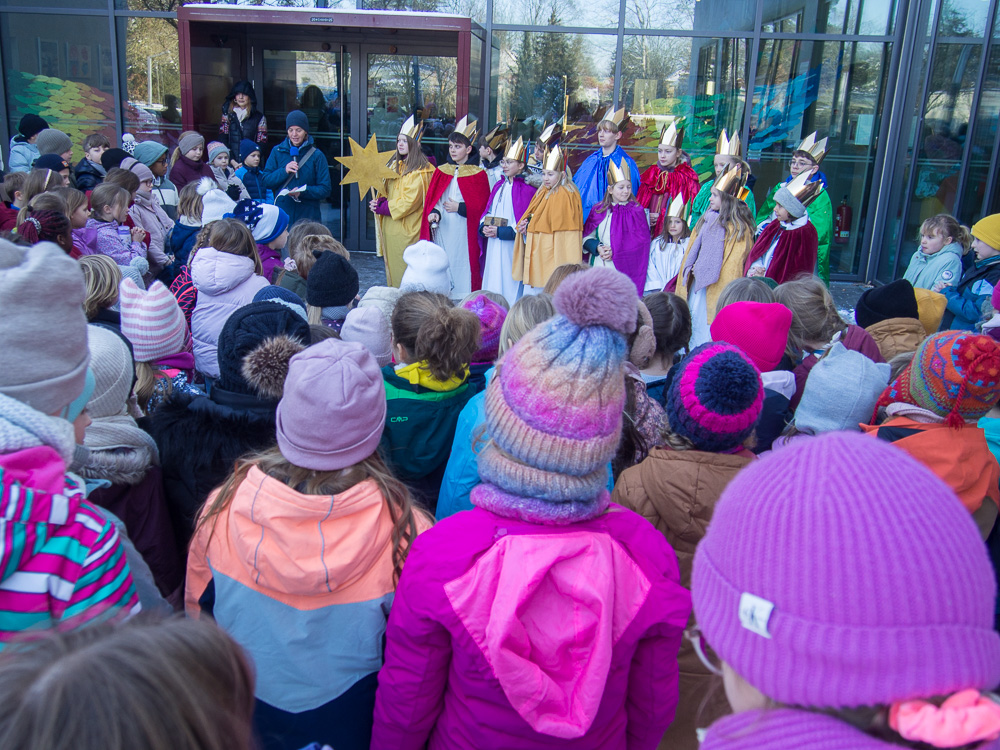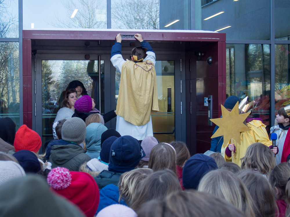 Nach den Weihnachtsferien kamen dann auch traditionsgemäß die Sternsinger an unsere Schule. Viele Kinder unserer Schule waren wieder in diesem Jahr dabei und segneten die Wohnungen und Häuser in Potsdam.