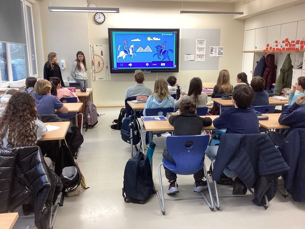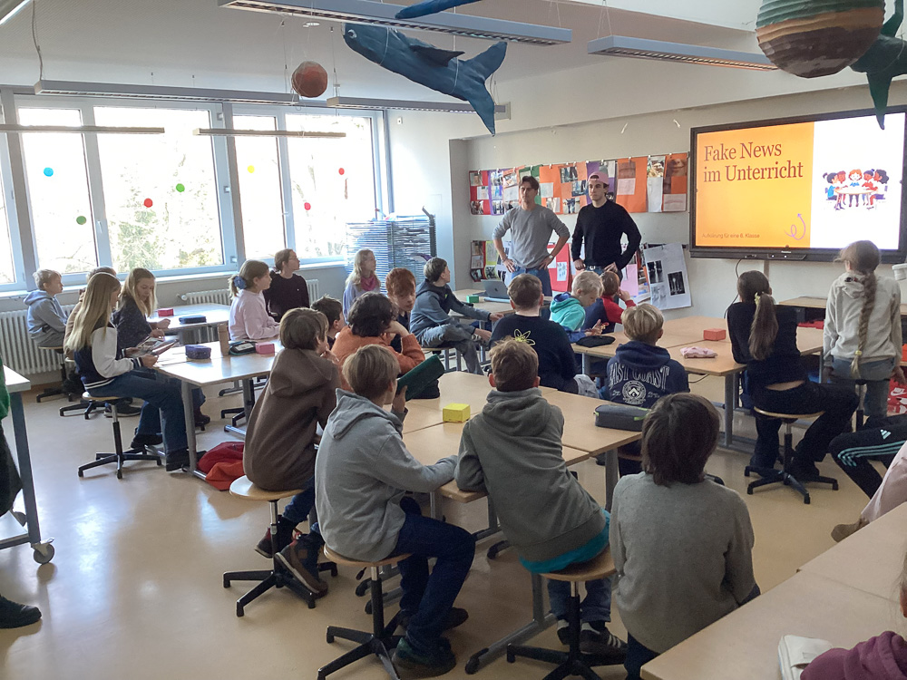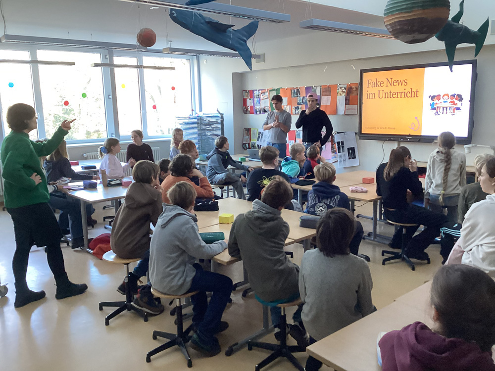Im Rahmen des Seminarkurses "Digitale Ethik" haben sich die Schülerinnen und Schüler des 12. Jahrgangs mit den philosophischen Grundlagen und praktischen Anwendungen im Themenbereich „Digitale Ethik“ befasst und zu selbstgewählten Themen ihre Seminararbeiten geschrieben. Bevor es ab Februar zu den individuellen Präsentationen kommt, haben sie in kleinen Gruppen Unterrichtsstunden zu den Themen Künstliche Intelligenz, Social Media und Fake News vorbereitet und durchgeführt. Schulübergreifend haben sie Kindern der 6. und 7. Klasse Wissen vermittelt, Diskussionen geleitet und durch authentische Berichte und persönliche Reflexion ihre Erfahrungen mit Apps wie ChatGPT und TikTok geteilt. Unterm Strich bleiben ein großes Interesse auf beiden Seiten und ein geschärftes Bewusstsein für einen verantwortlichen Umgang mit den digitalen Medien.