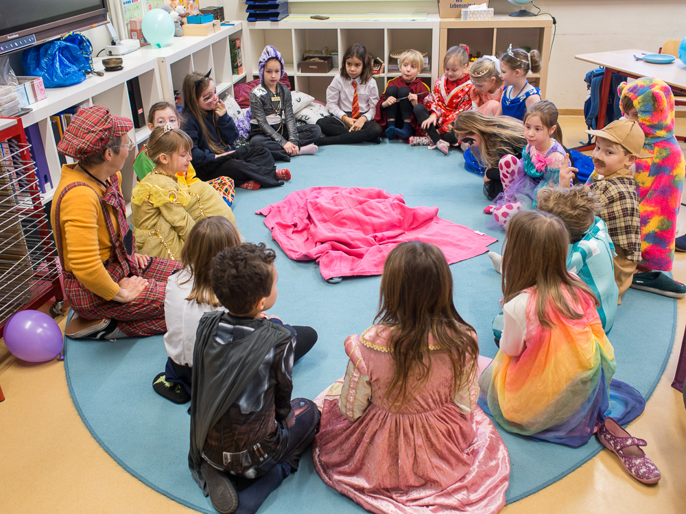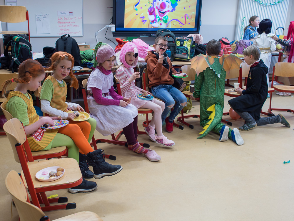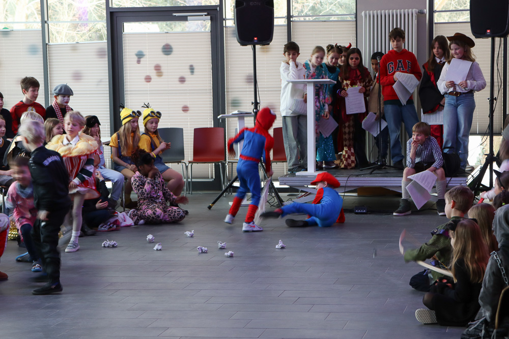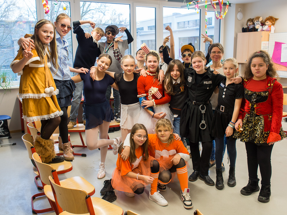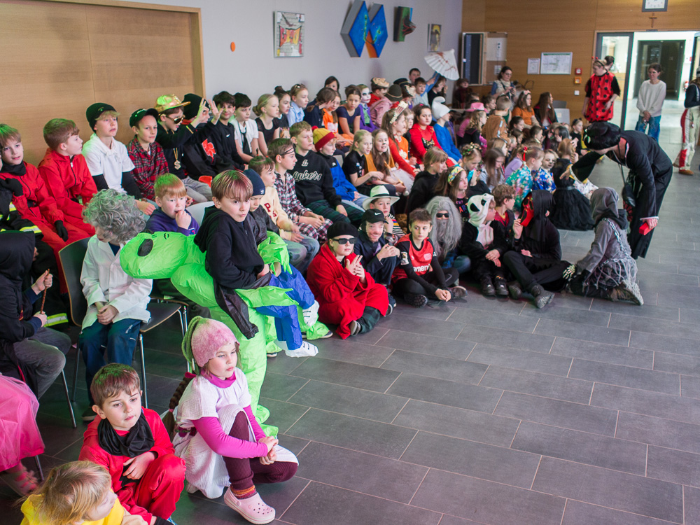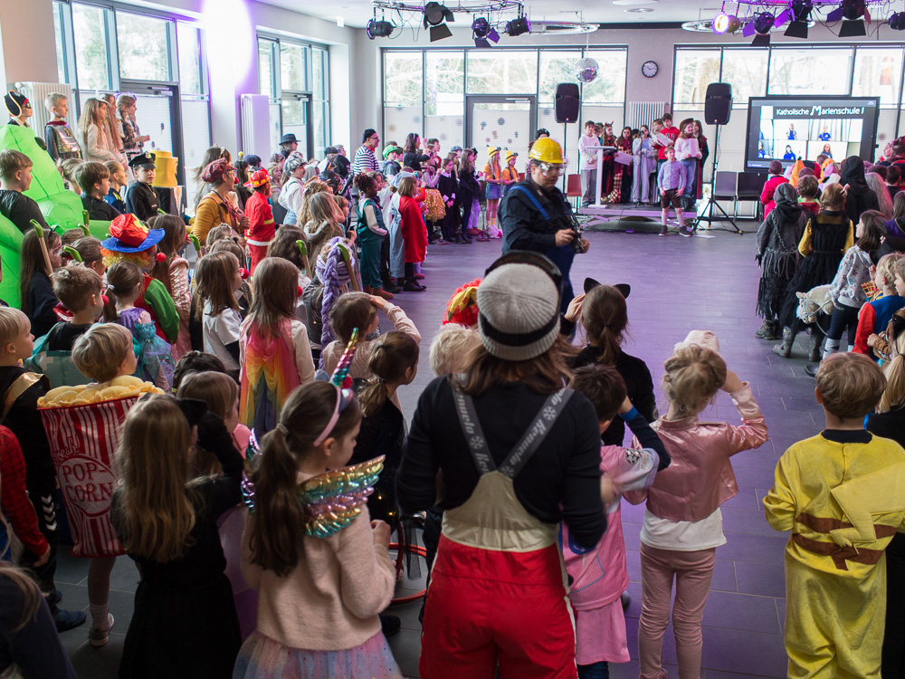 Faschingsdienstag war es bunt in der Marienschule. Alle feierten Fasching - erst in der Klasse und dann gemeinsam in der Mensa.