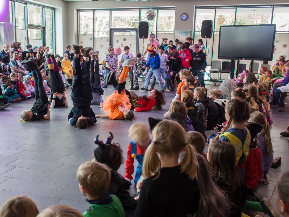 Jede Klasse hatte etwas einstudiert und wurde bejubelt. Nach tollen Spielen und Tanzeinlagen ging es zurück in die Klassen zum Aufräumen.