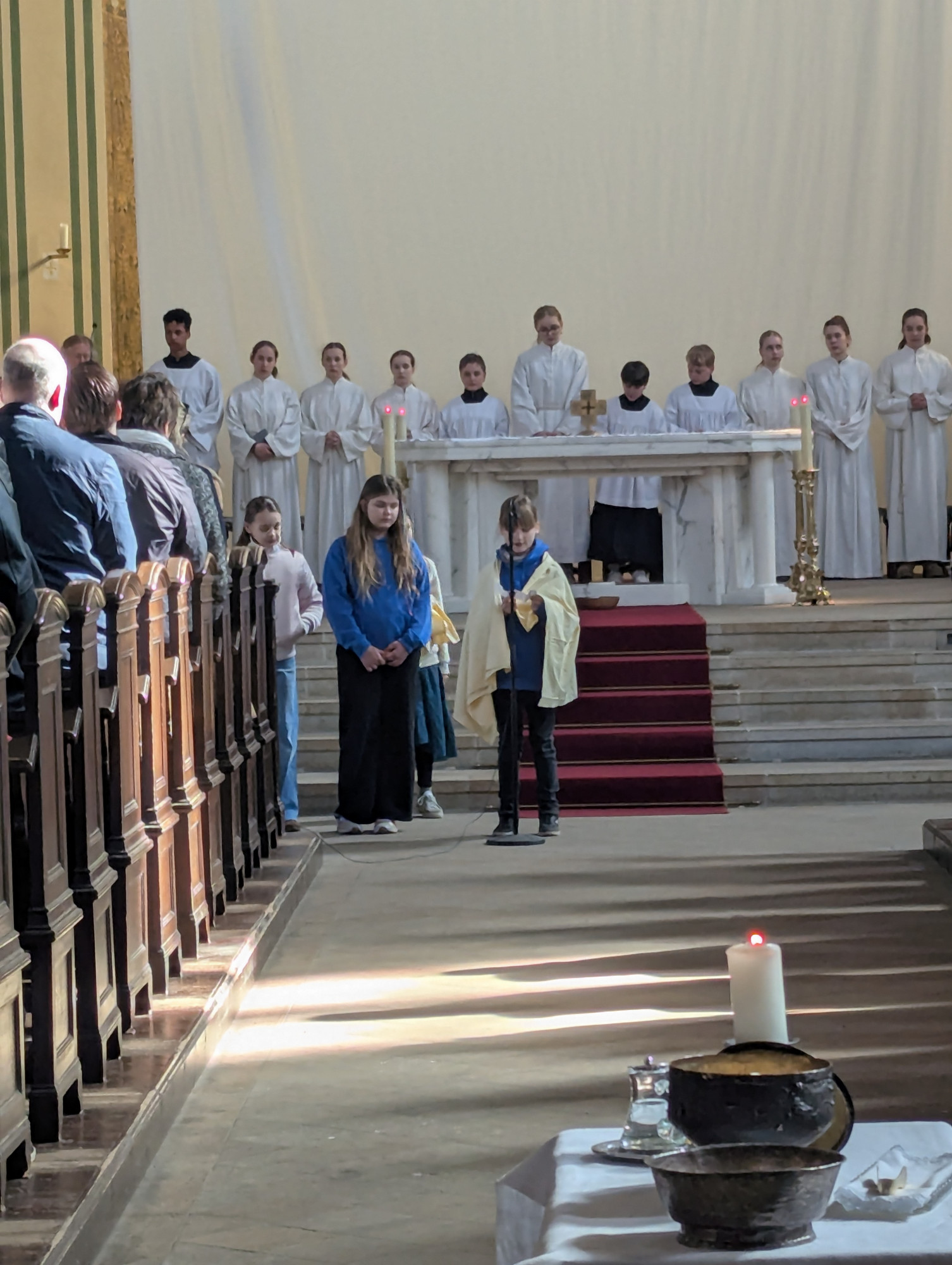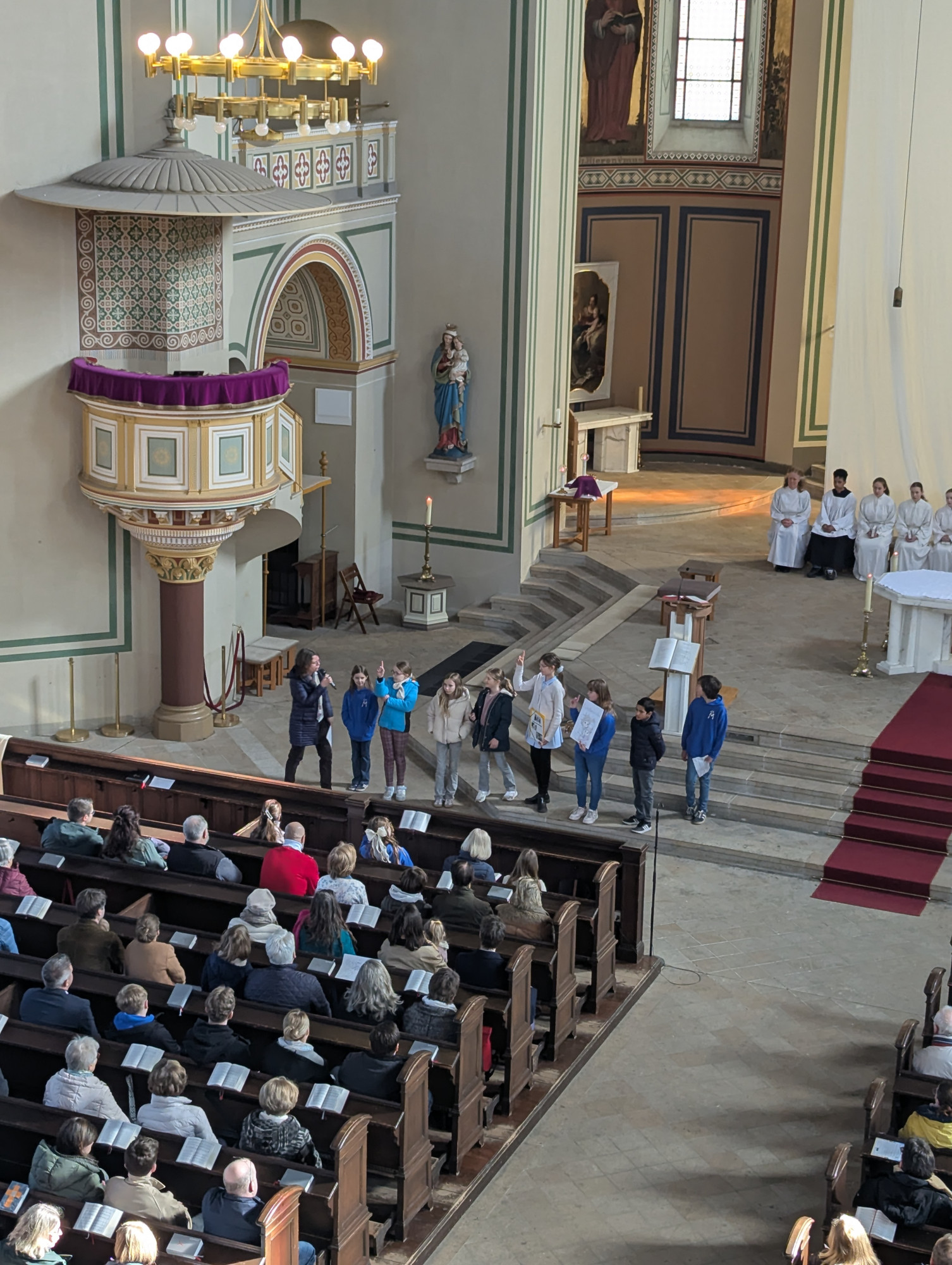 Bei strahlendem Frühlingswetter füllte sich am 22. März 2026 unsere Kirche St. Peter & Paul zum Misereor-Fastensonntag. Schülerinnen und Schüler, Eltern, Lehrkräfte der Marienschule sowie Gemeindemitglieder kamen zusammen, um gemeinsam Gottesdienst zu feiern.