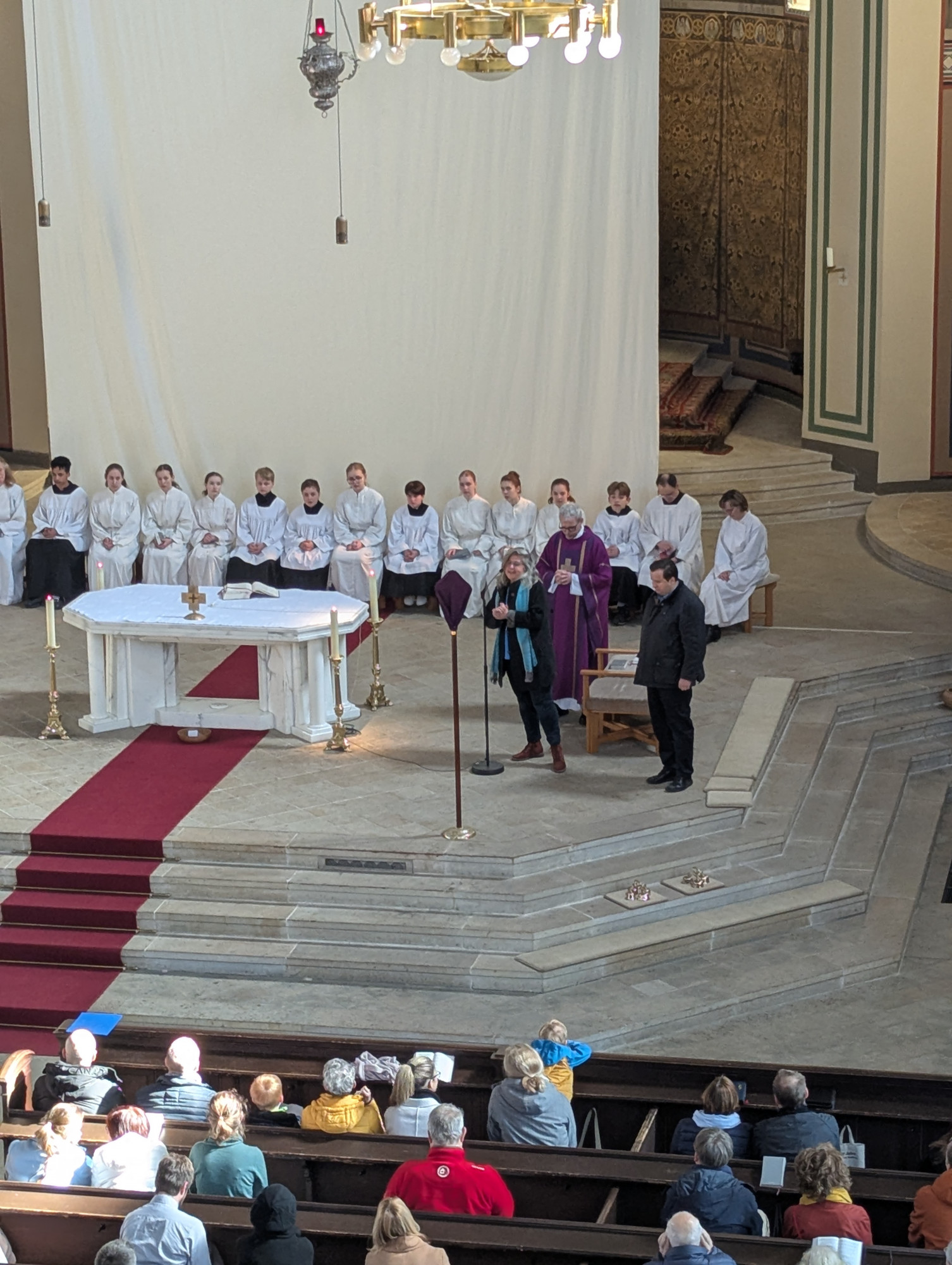 Für die musikalische Gestaltung sorgte der Chor unter der Leitung von Frau Berndt mit schwungvollen Liedern, die eine festliche und lebendige Atmosphäre erzeugten. Auch Frau Eisner und Herr Lünenbürger musizierten und trugen dazu bei, dass der Gottesdienst geistlich und feierlich begleitet wurde.