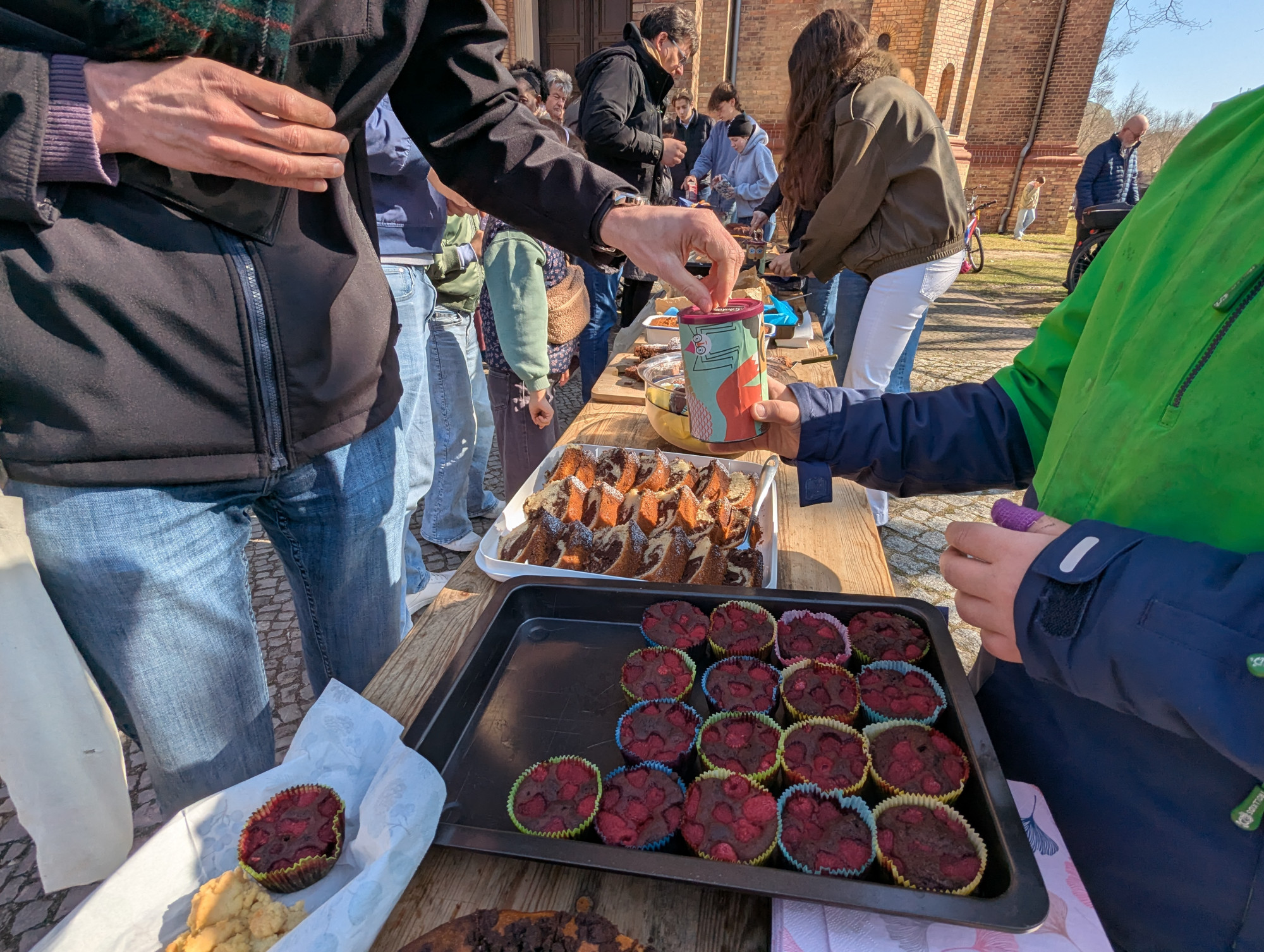 Im Anschluss verwandelte sich der Kirchenvorplatz in einen Ort lebendiger Begegnung. Bei Kaffee und Kuchen standen viele noch lange im Sonnenschein zusammen, kamen miteinander ins Gespräch
