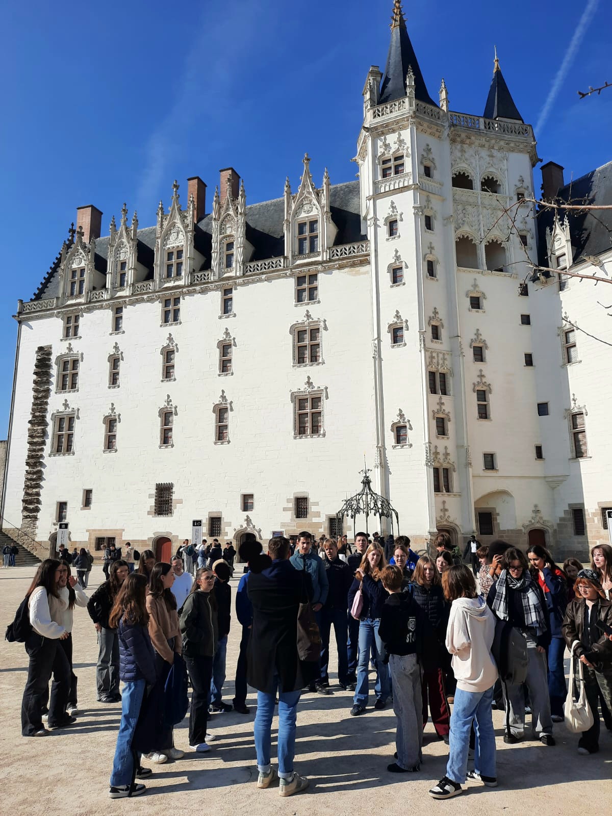 Am Dienstagmorgen haben wir uns, nach einem Frühstück in unseren Austauschfamilien, an der Schule getroffen, um an einem Volkstanz-Projekt teilzunehmen. Durch das Projekt hatten wir die Möglichkeit, gegenseitige bretonische und brandenburgische Tanztraditionen kennenzulernen und als Gruppe zusammen neue Dinge zu entdecken. Dann haben wir zusammen eine einstündige Fahrt nach Nantes unternommen, wo wir nach Besuch verschiedener Sehenswürdigkeiten, wie der Kathedrale, des Chateau des Ducs de Bretagne und dem berühmten Elefanten, die Möglichkeit hatten, für zwei Stunden auf eigene Faust die Stadt zu erkunden. Zum Abschluss haben wir Eis genossen. Nach unserer Rückkehr sind einige von uns zu einem naheliegenden Fußballplatz gegangen, wo wir eine gemeinsame Partie Fußball genossen haben. Nach einem erlebnisreichen Tag sind wir zu unseren Austauschfamilien zurückgekehrt und haben mit ihnen zu Abend gegessen. (Text: Anni & Paulina)